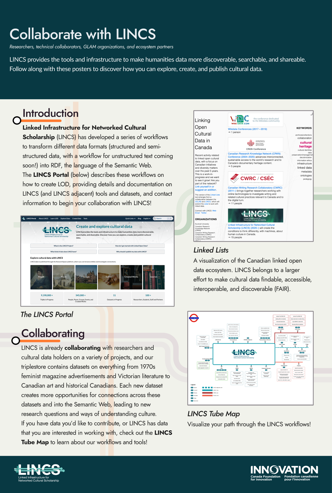 • Martin, Kim, Susan Brown, Alliyya Mo, and Deb Stacey. “LINCS: From Context to Reconciliation to Exploration.” Poster presented at Congress of the Humanities and Social Sciences 2023. York University. May 31, 2023.