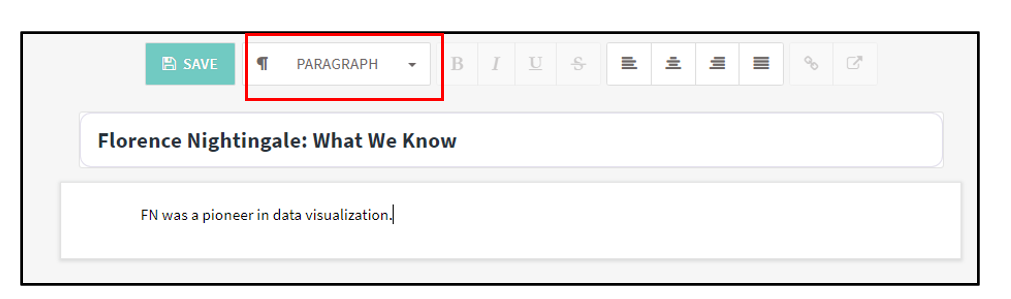- Begin typing text into the blank document. Note the dropdown menu in the toolbar indicates you are in paragraph mode.